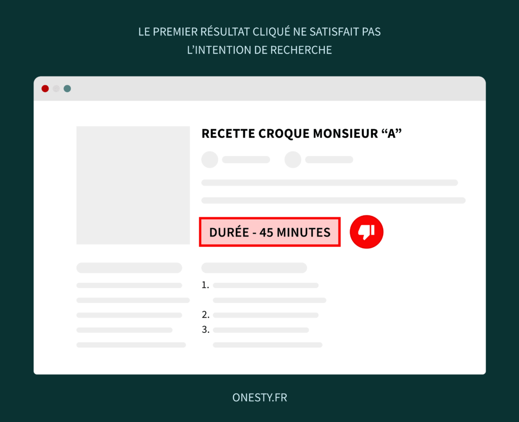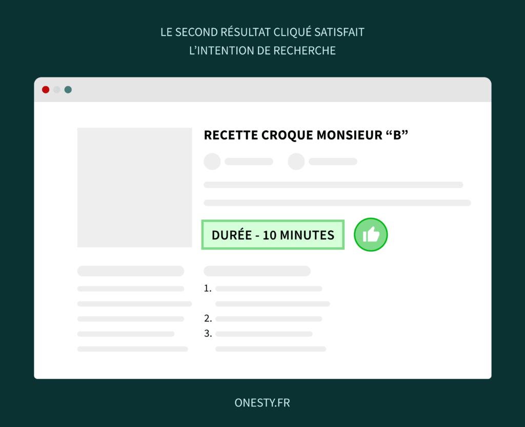 Vous êtes déçu, vous quittez immédiatement cette page, et cliquez sur le 4ème lien, qui vous propose une recette de croque monsieur, notez 4,9/5 et vous avez votre croque monsieur dans 10 minutes.