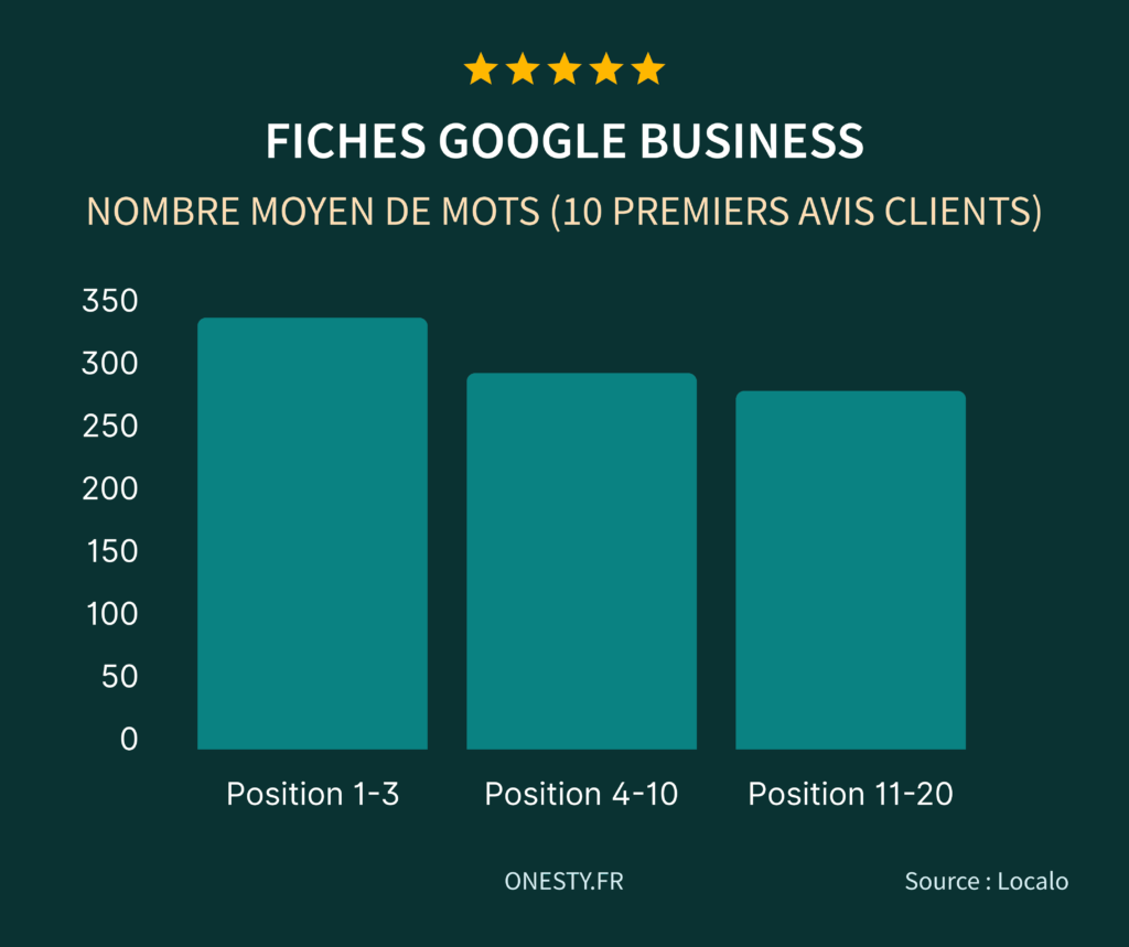 Les fiches Google dans le top 3 reçoivent des avis d’environ 350 mots
